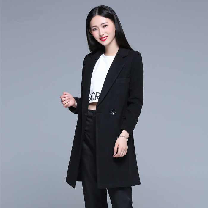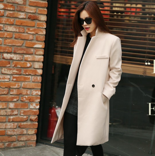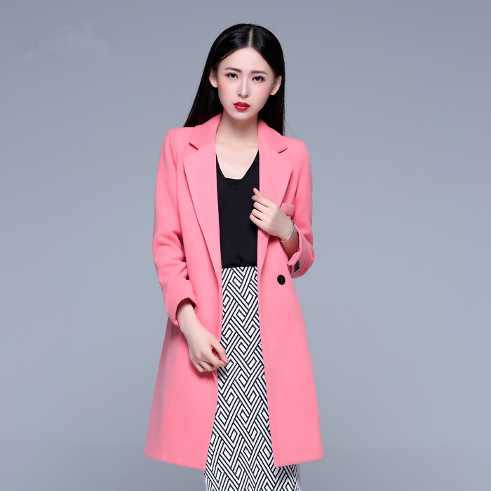 > Damen Bekleidung > Jacken > Mode Eleganten Damen langer Mantel Winter Knopf slim Wolle Mantel Kaschmir Mantel Beige Rosa Schwarze Damen Mäntel