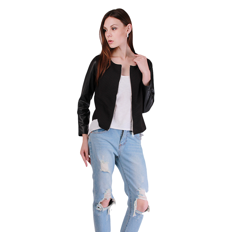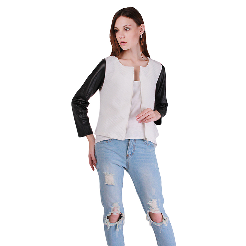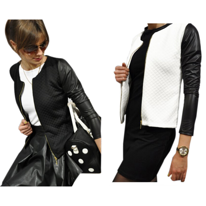> Damen Bekleidung > Jacken > Top chic Stilvollen Damen Damen reißverschluss pu Leder lange Ärmel Patchwork Jacke fallen lässig Outwear Mantel