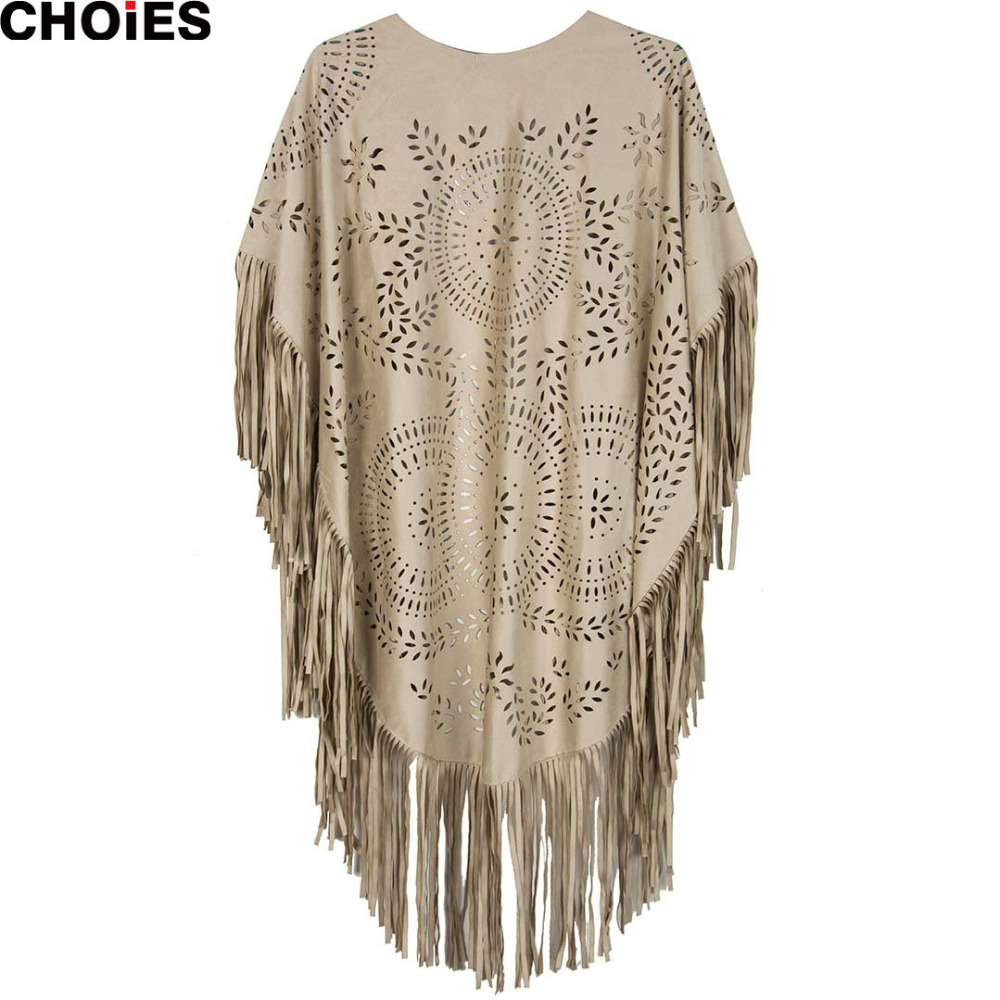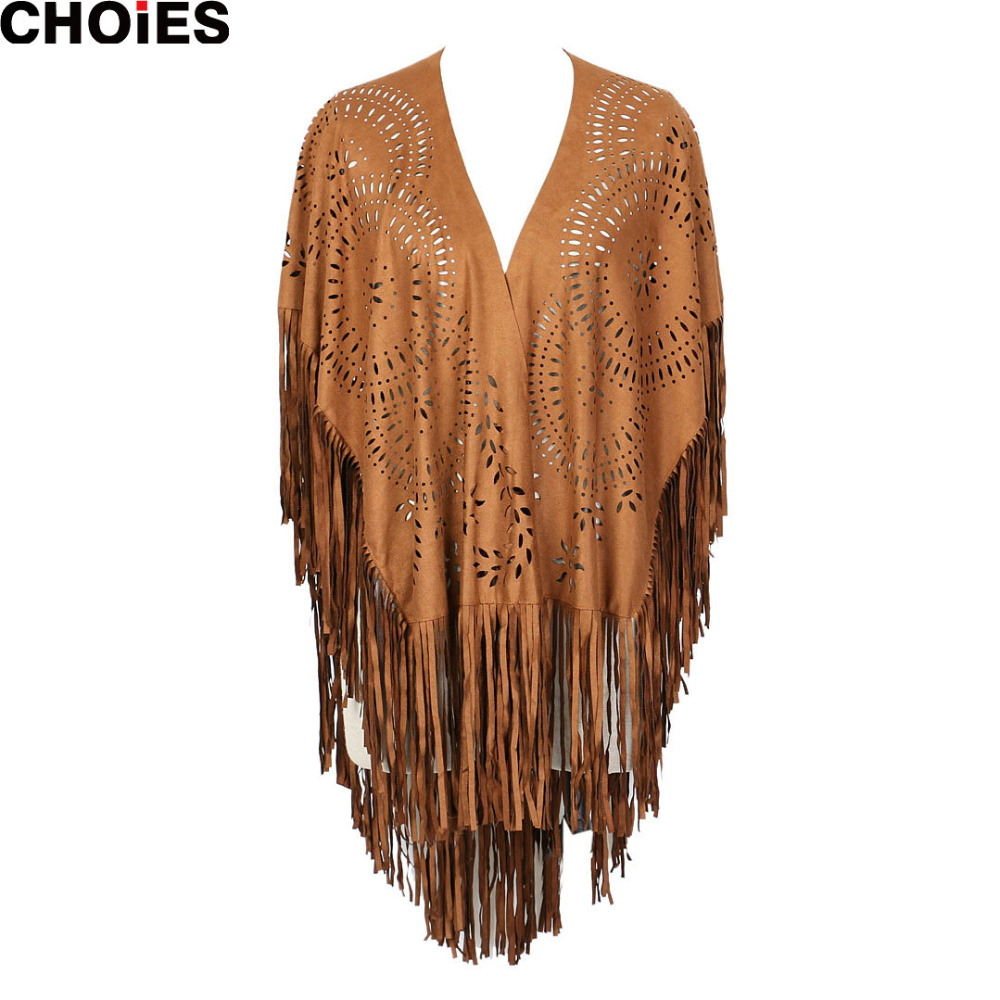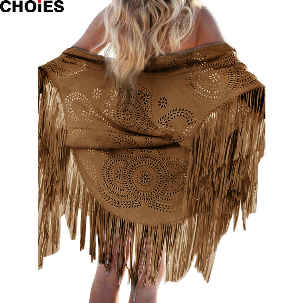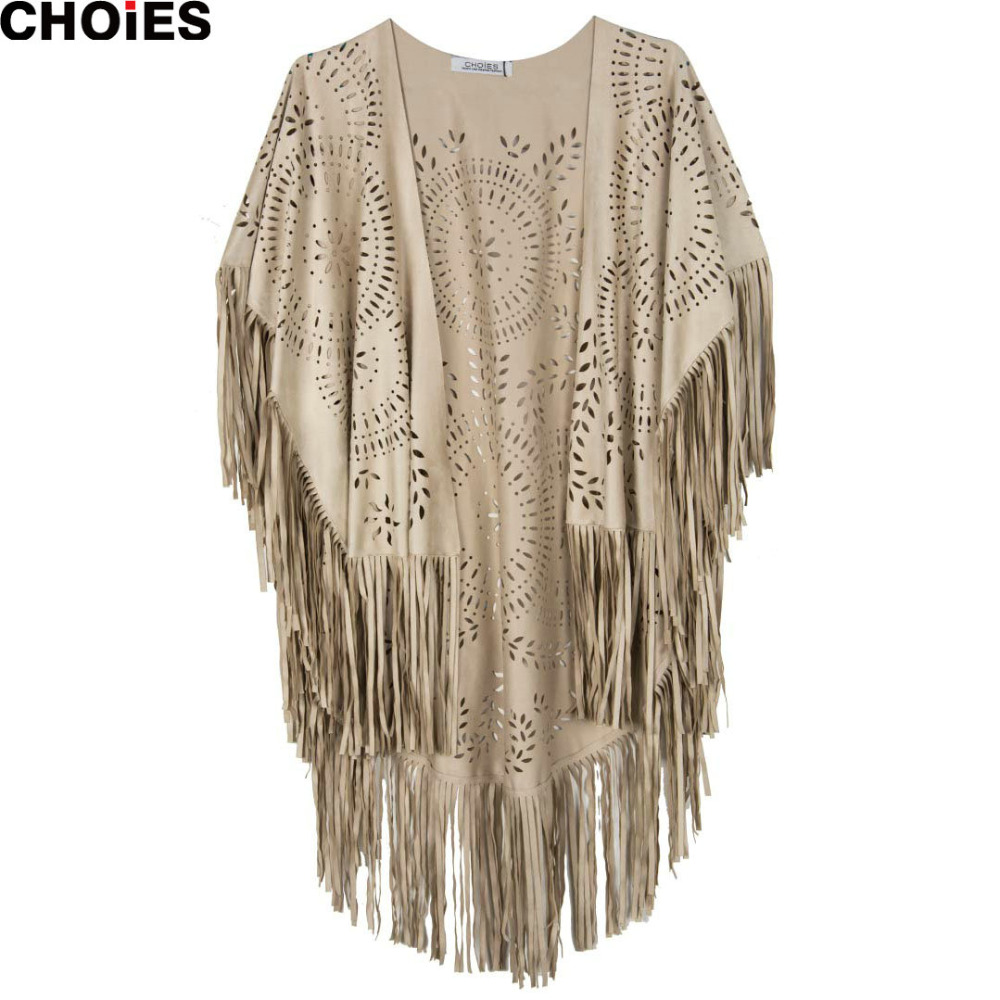 > Damen Bekleidung > Jacken > 4 Farben choies Damen Faux Wildleder Leder schnitt Sommer Strand Vertuschung Kimono lange fransen Quasten Mantel Strick
