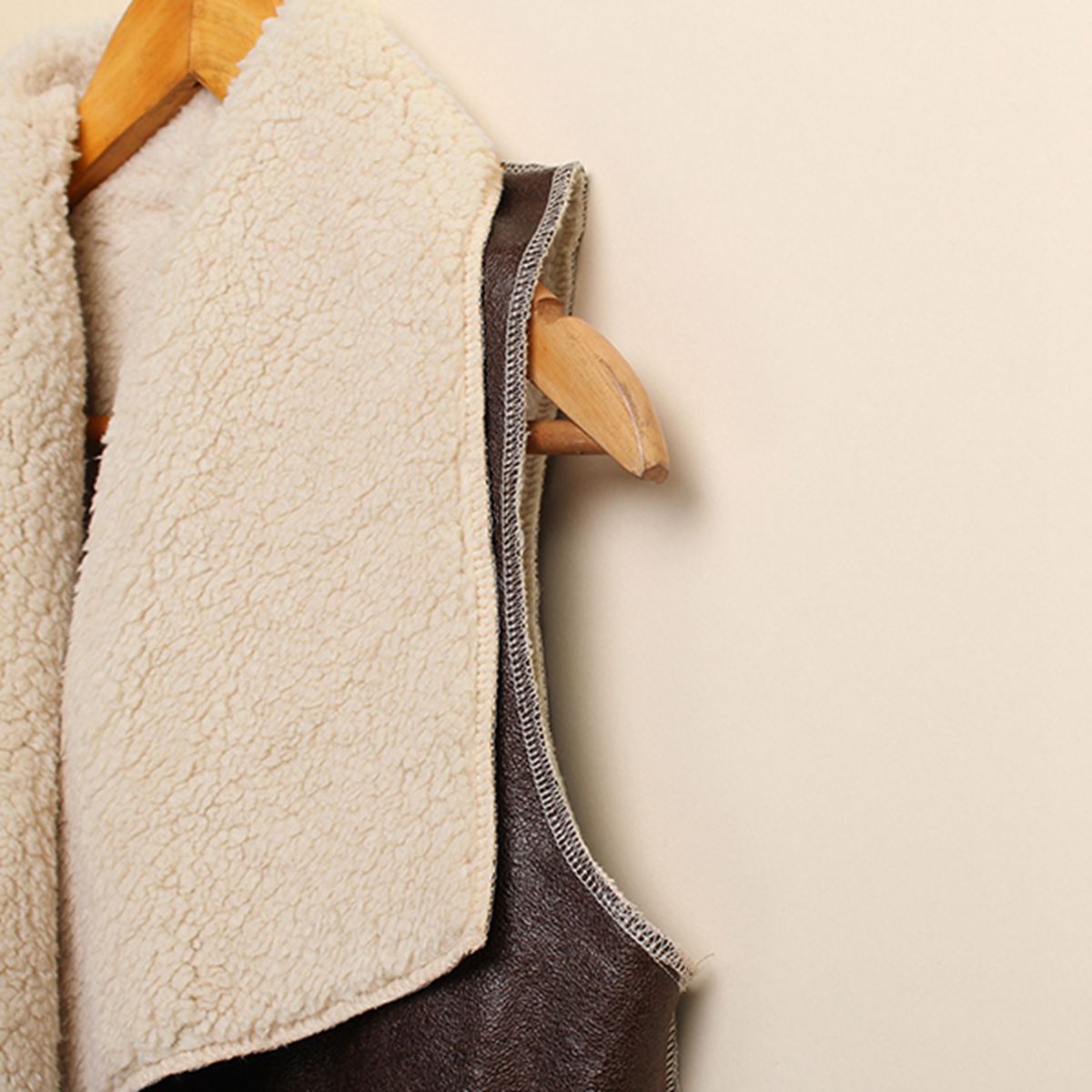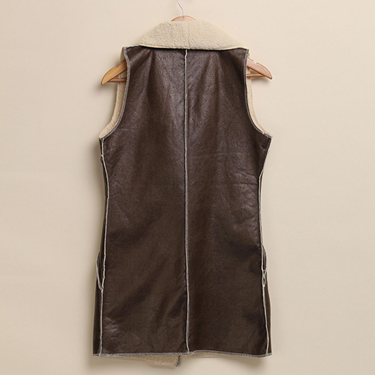> Damen Bekleidung > Jacken > Herbst Winter Damen FreiZeit warm Faux Pelzkragen lange Leder Weste Mantel OberBekleidung Weste lässig Jac