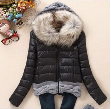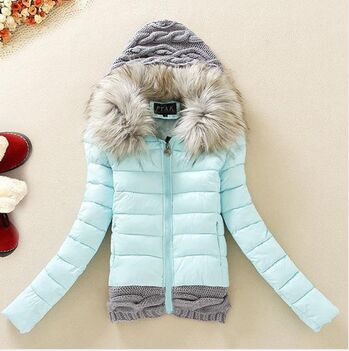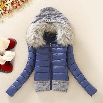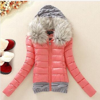> Damen Bekleidung > Jacken > Frau Wintermantel Baumwolle Gepolsterte Jacke kurz Gewirkt Hood Pelzkragen ins Winter Jacken und Mäntel