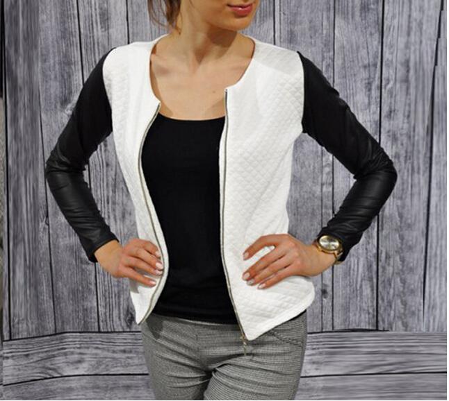 > Damen Bekleidung > Jacken > Damen pu Leder casual chic Stilvolles Top lange Ärmel Outwear Parka Jacke lxz02 Mantel reißverschluss Patchwork