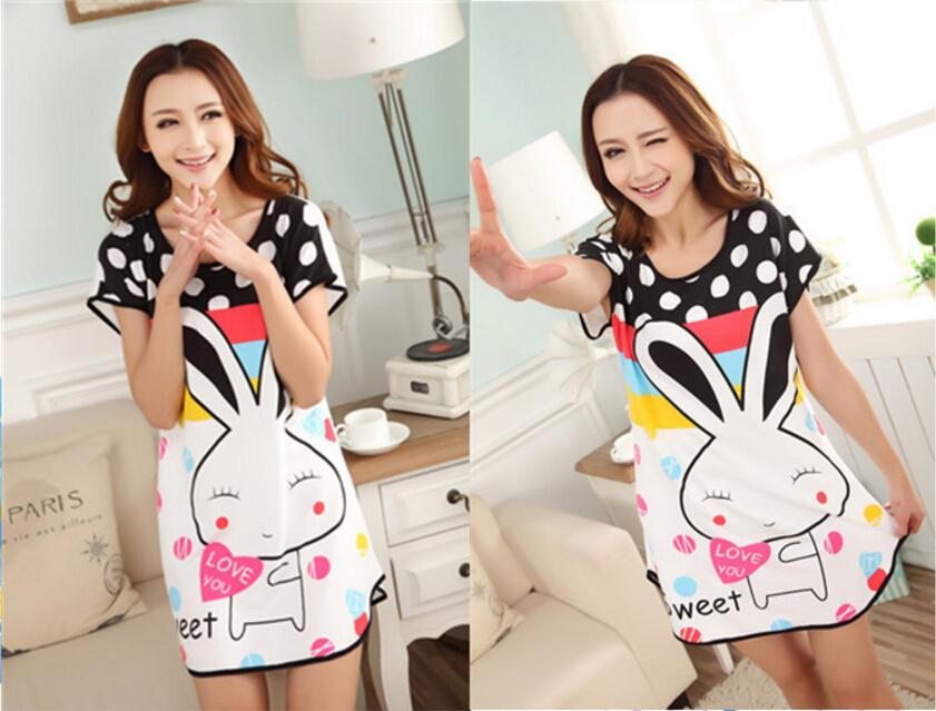 > Damen Bekleidung > Schlaf > imc sehr süß Damen Cartoon Polka Dot Sleepshirt kurze Ärmel Nachtwäsche Mode Damen Nachthemden in einem