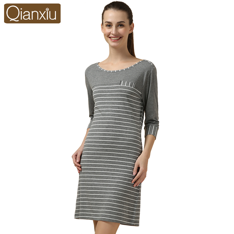 > Damen Bekleidung > Schlaf > qianxiu Mädchen Nachthemd drei viertel dessous Knielangen sleepskirt Modal Baumwolle Nachtwäsche für Damen