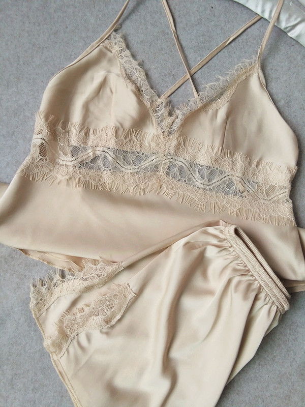 > Damen Bekleidung > Schlaf > ein neuer Sommer sexy Damen Nachtwäsche Pijamas Setzt Versandkosten echte Seide Nachtwäsche Setzt Damen spit