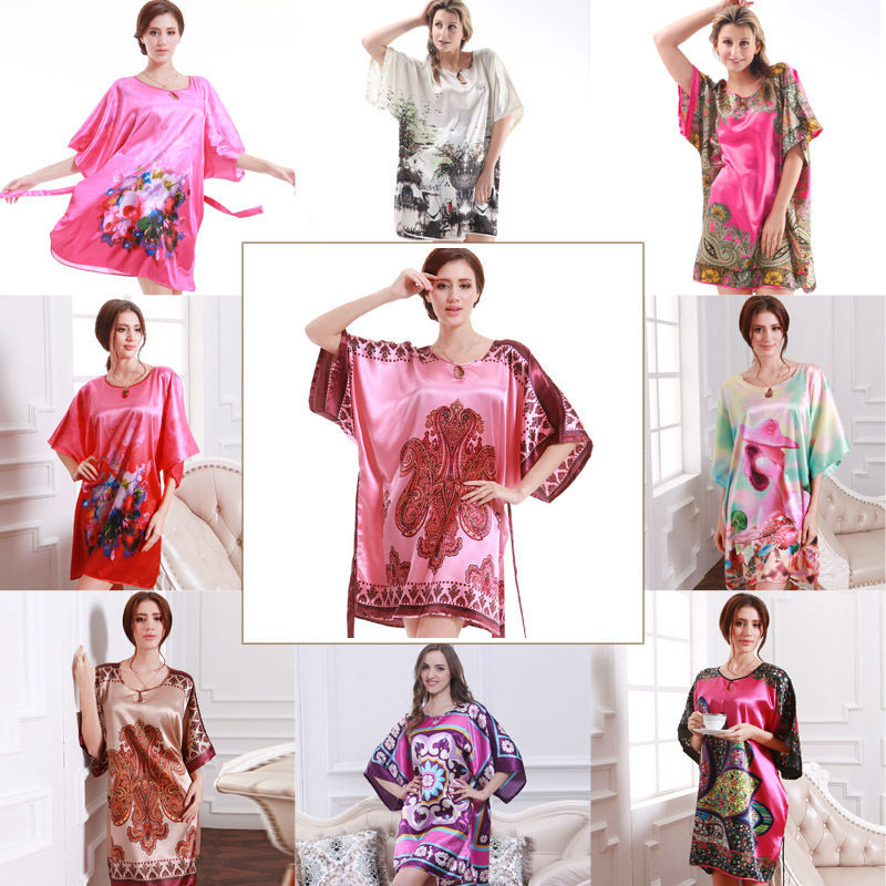 > Damen Bekleidung > Schlaf > heißes Verkauf Nachthemden Sleepshirts Damen Summer Style Nachthemd Bademantel longue der Faux Seide Bademantel