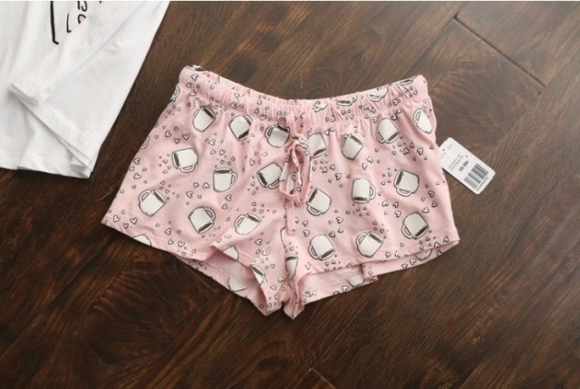 > Damen Bekleidung > Schlaf > süßer Pyjama Sets mit Weissen und Rosa Grau und grün kaffeeTassen gedruckt Damen Pyjamas heiß Verkaufen