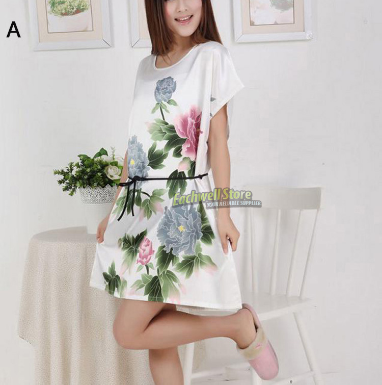 > Damen Bekleidung > Schlaf > kurze Ärmel Floral sexy plus Size Damen Morgenmantel Lady Mädchen Seidenpyjama hausmantel Nachthemden Loungewear