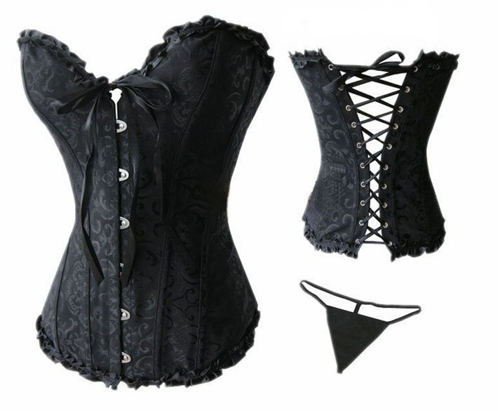 > Damen Bekleidung > Dessous > sexy dessous aus Schwarzem Satin Besticktes Korsett Bustiers Korsetts und String plus Size s m l xl xxl 3xl 4xl