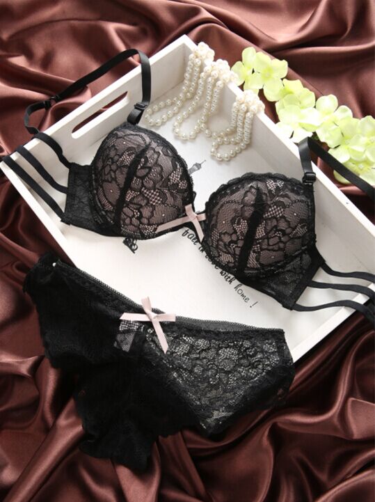 > Damen Bekleidung > Dessous > Mode neuzugang weibliche Schwarze Spitzen Top Cup sexy BH Set rutschhemmend Unterwäsche push up lingeries