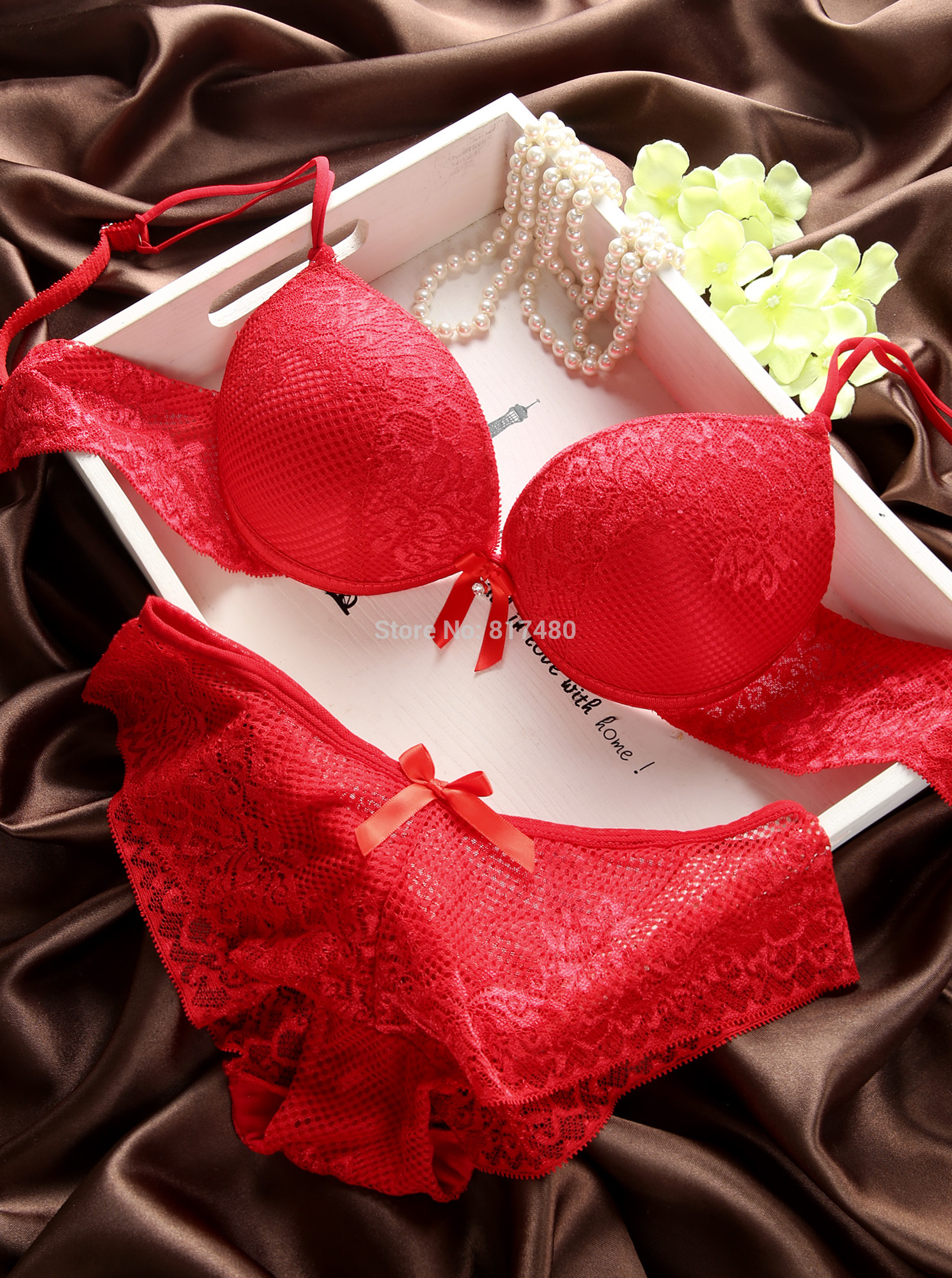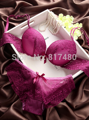 > Damen Bekleidung > Dessous > Mode Roter Spitze dünn dick mit Tiefen v Neck push up BH hat Höschen akzepTieren überzählige Brust