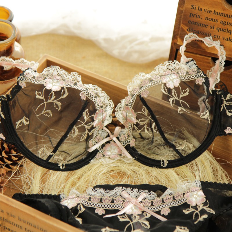 > Damen Bekleidung > Dessous > neue Mode Transparente sexy BH hat plus Size Damen Spitzen ultra thin Blue Unterwäsche Set free Shipping