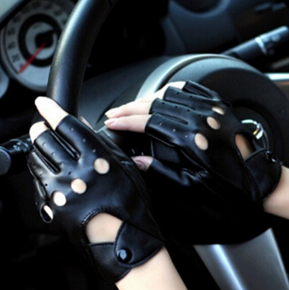 > Damen Bekleidung > Zubehör > kostenLoser Versand Mode halben finger fahren Damen Handschuhe 1 Paar pu Leder fingerless Handschuhe für Damen
