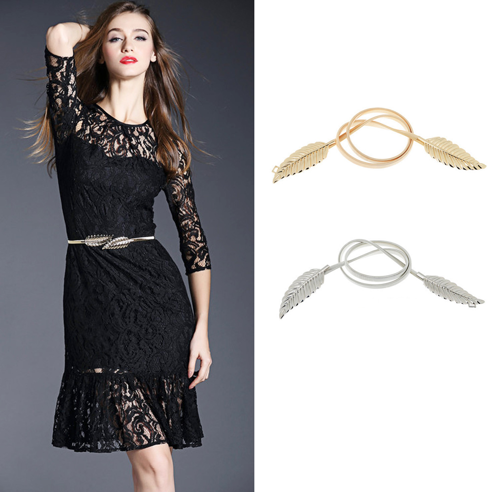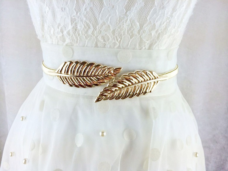 > Damen Bekleidung > Zubehör > alte Damen gürtel leaf Design Verschluss Stück Metall Taillengürtel Dünnen elastischen ceinture cinturones mujer Gold