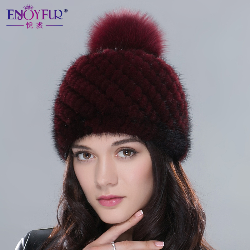 > Damen Bekleidung > Zubehör > heißes Verkauf echter Nerz Fellmütze für Damen im Winter aus Nerz Fell Beanies gap mit Fox für pom poms neue Dicke