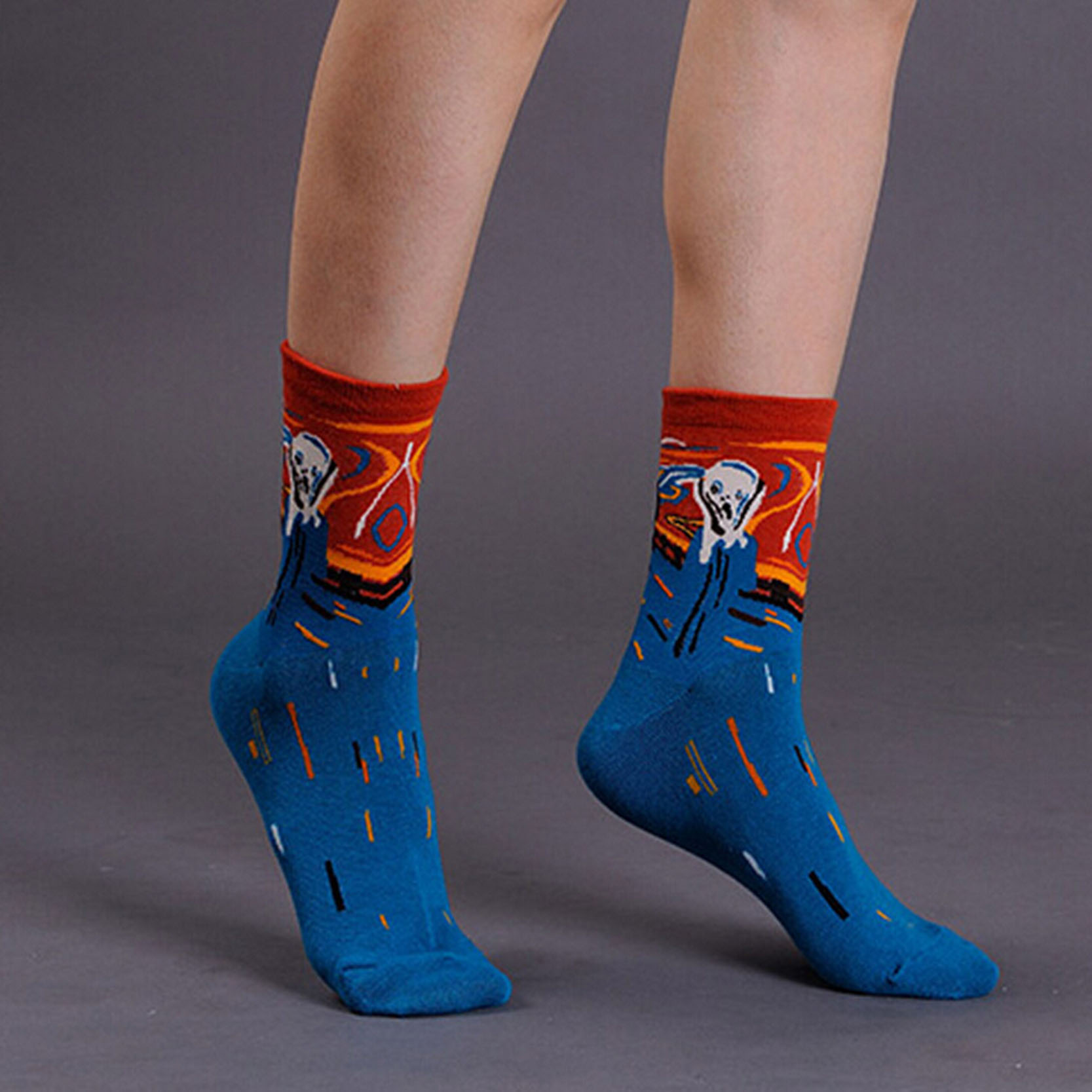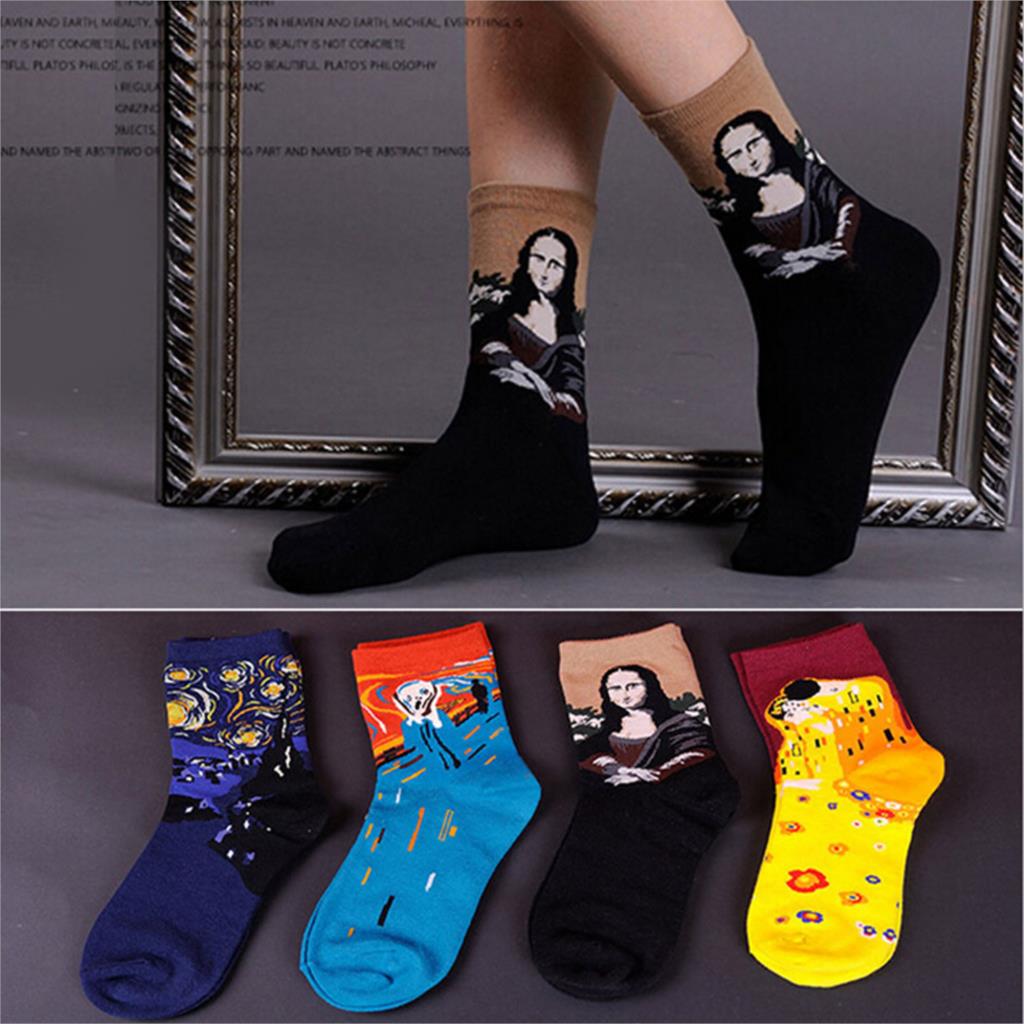 > Damen Bekleidung > Socken > meias Femininas Masculinas Mode darstellende Kunst Socken mona lisa der schrei Sternennacht kurze Socken Vintage Stil