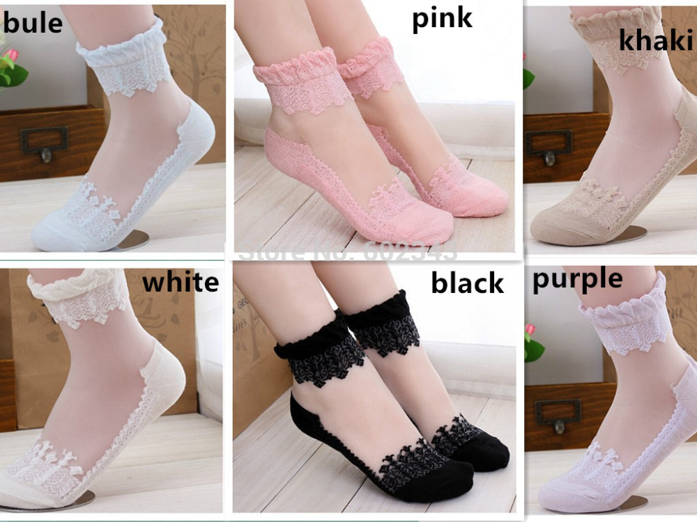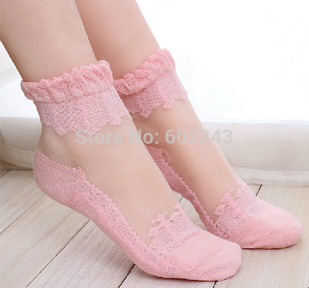> Damen Bekleidung > Socken > heißes Verkauf bunte ultrathin Transparente Schöne Crystal Spitzen elastischen kurze Damen Socken calcetines Rosa Socke