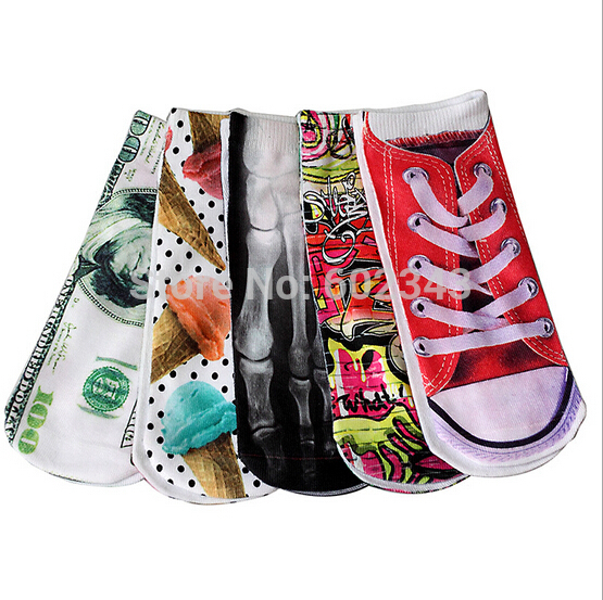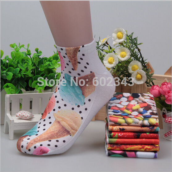> Damen Bekleidung > Socken > 1pair 3d gedruckte Socken Damen neue unisex süß DekolleTee Söckchen mehrere Farben Baumwolle Socke Damen