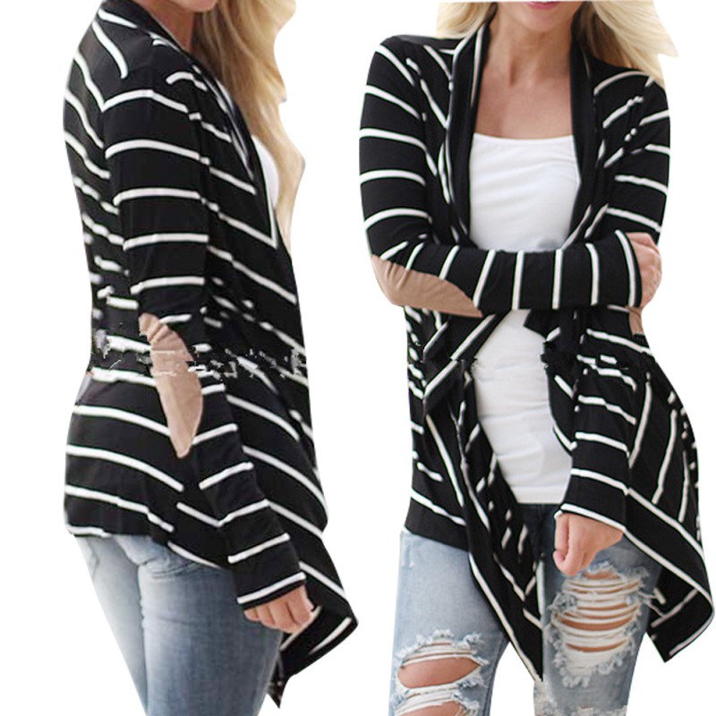 > Damen Bekleidung > Pullover > Damen mit langen Ärmel Locker Strickjacke Pullover Gestreiften Strickwaren Outwear Mäntel s m l xl