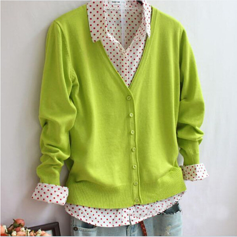 > Damen Bekleidung > Pullover > neue kamen Damen Kleidung Süssigkeiten Farbe Pullover gestrickt Strickjacke Lang Ärmelige Pullover Damen Strickjacke