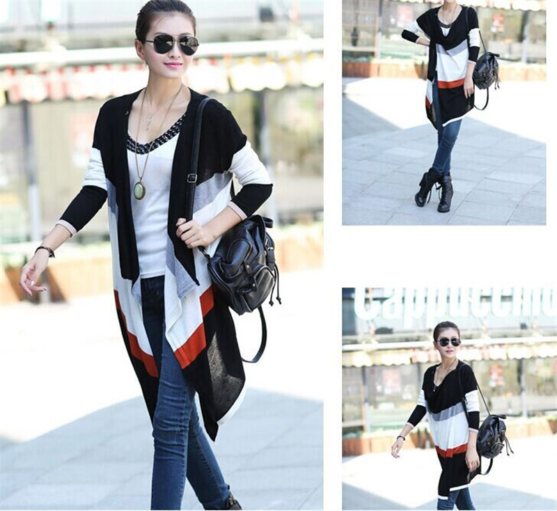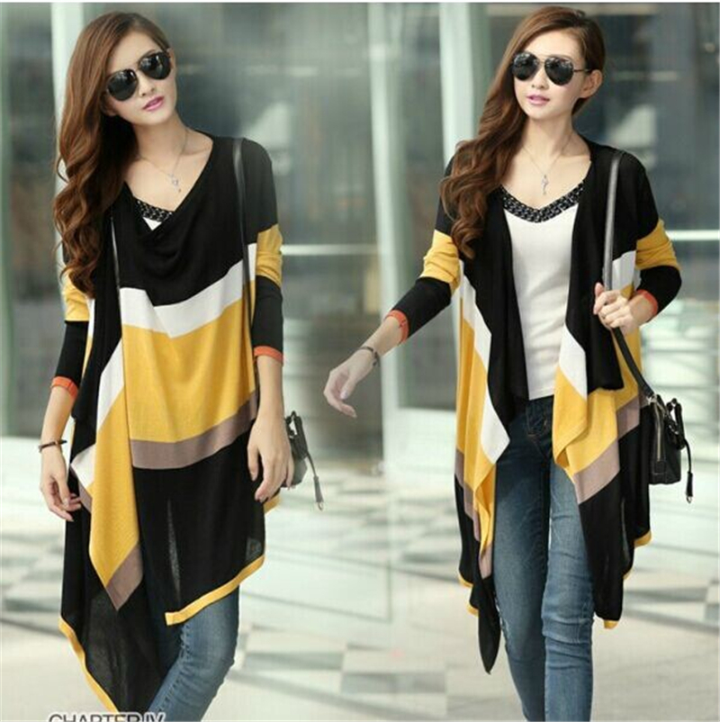 > Damen Bekleidung > Pullover > Damen lange Cardigans Frühlingsmantel bunte Streifen aus Pulli ziehen gilet Femme Manche longue Lockere Oberbekleidung