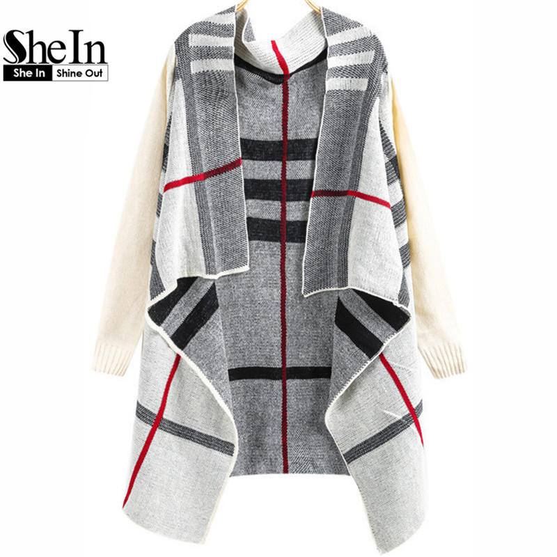 > Damen Bekleidung > Pullover > Mode Frühling & schejin Strickwaren Damen Marke lange Stricken Pullover lässig Cape Weissen Langarm karierte