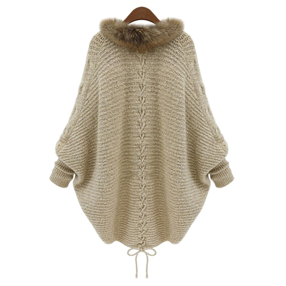 > Damen Bekleidung > Pullover > Damen Winter Strickjacke dick Poncho Capes zieht Femme Herbst Marke Mode aus Pelzkragen Wolle Pulli Jacke bat