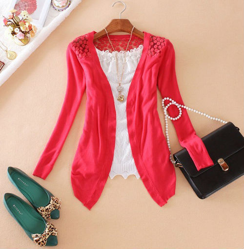 > Damen Bekleidung > Pullover > heiß Hochwertige Mode Damen Strickjacke Spitzen süß Süssigkeiten reine Farbe Bluse Pullover Häkeln Stricken Strickjacke
