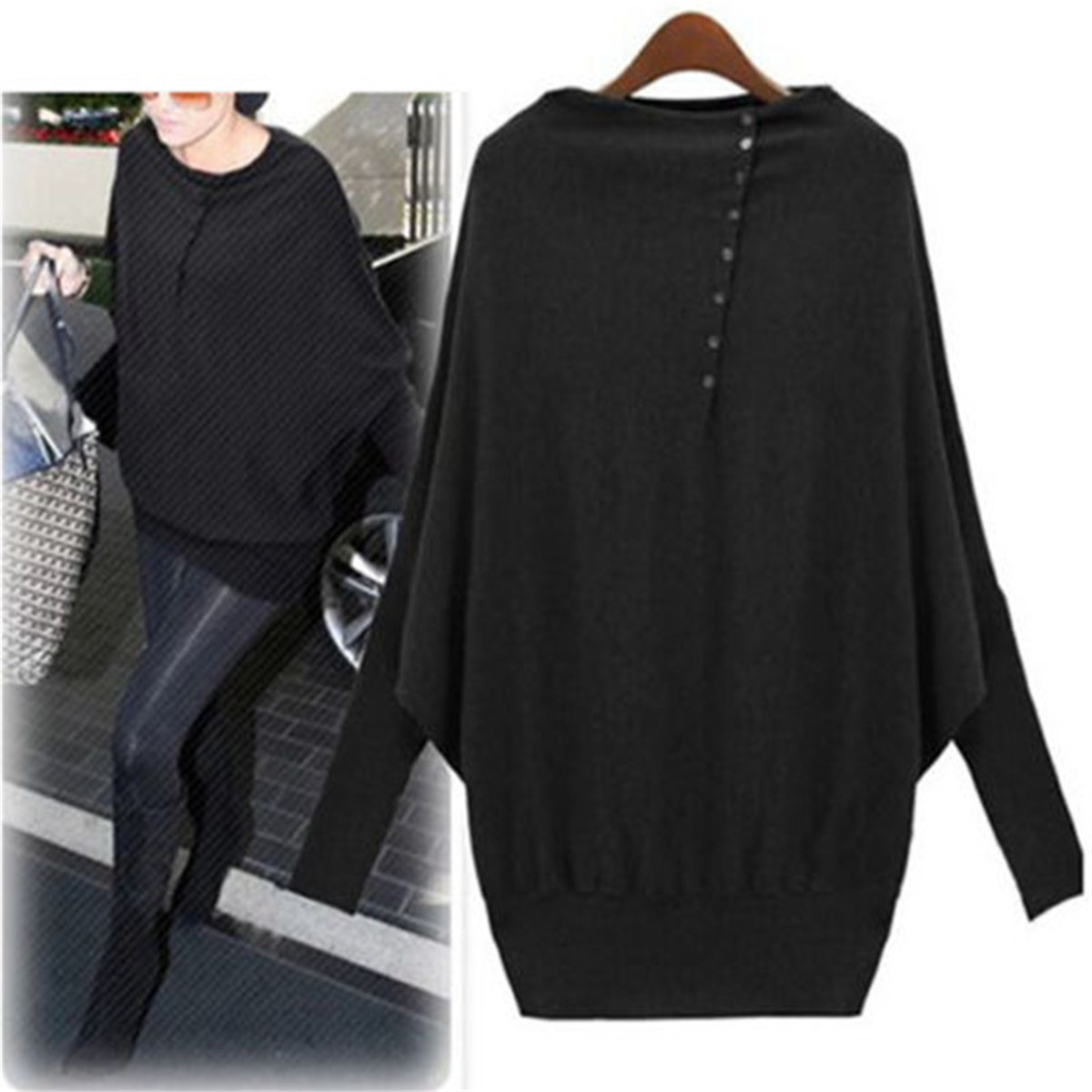 > Damen Bekleidung > Pullover > Marke Damen Pullis und Pullover im Herbst Mode casual Batwing Ärmel Knopf aus langer Pullover und Grösse auch