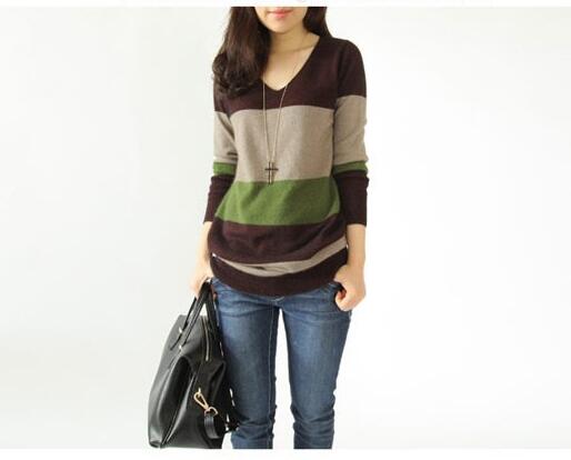 > Damen Bekleidung > Pullover > die Damen der Mode Herbst Winter Pullis Stricken sweter Cashmere Kleider sueter Damen Streifen patchw Pullover