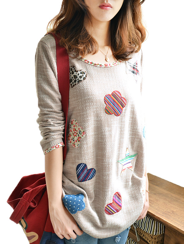 > Damen Bekleidung > Pullover > gute Damen plus Size lange Stricken Pullover Damen lange Ärmel Blume Herz patch Pullis Mode Pullover Pulli