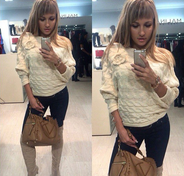 > Damen Bekleidung > Pullover > elina Damen Blumen Verdrehte Damen kleding jerseis Gewirkt sweter zieht Femme SpRinger lange Pullover Pullis