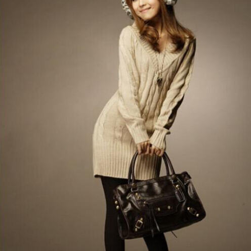 > Damen Bekleidung > Pullover > lange Pullover Herbst Winter Damen Mode Pullover SpRinger fallen 3 solide Farben Hals basic aus Pullover Kleid