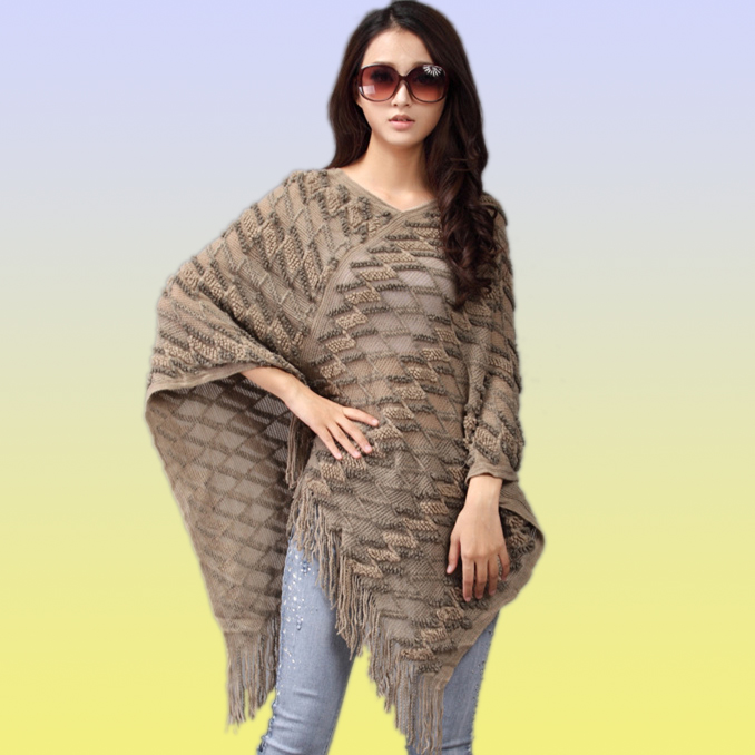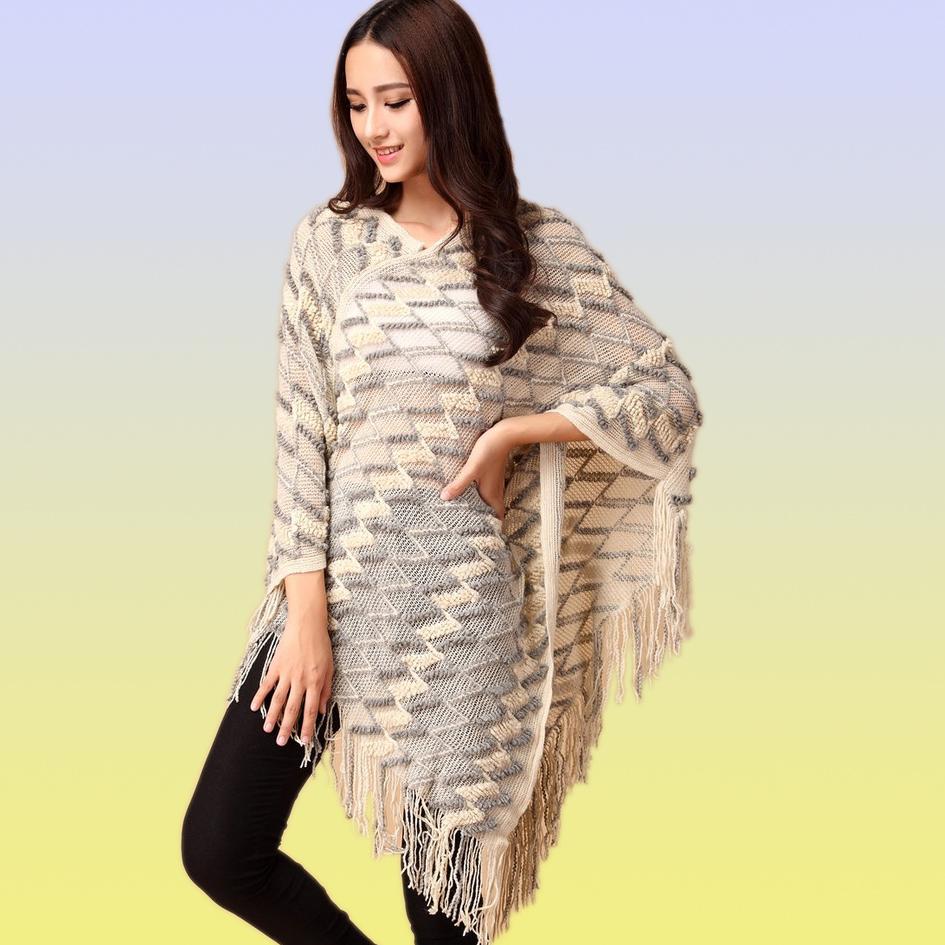 > Damen Bekleidung > Pullover > neue Frühling Herbst Winter Damen Pullover Damen Quasten Poncho lange Pullover aus Cape Mantel aus gewirken