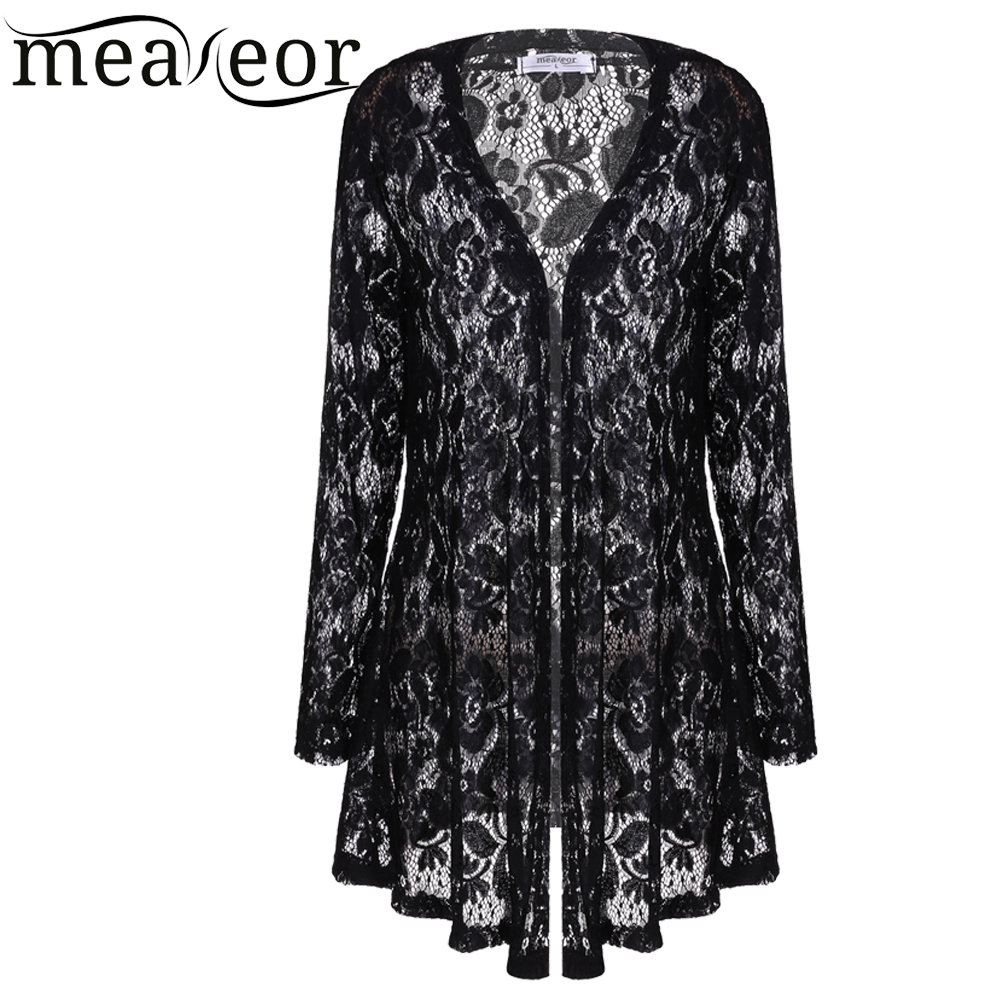 > Damen Bekleidung > Pullover > meaneor Damen Strickjacke casual Spitzen Häkeln lange Ärmel open lange Schwarz Weisse Strickjacke Mantel