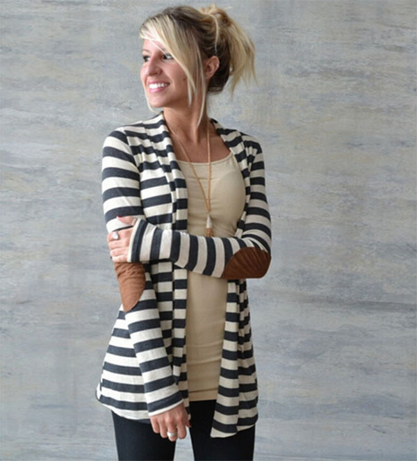 > Damen Bekleidung > Pullover > Schwarz Weiss Gestreiften ellenBogen pu Leder selbst lange Ärmel aus Strickjacke slim Frühling im Herbst Damen pullo