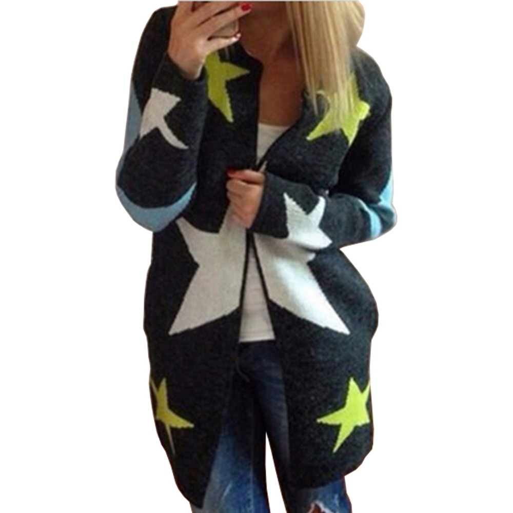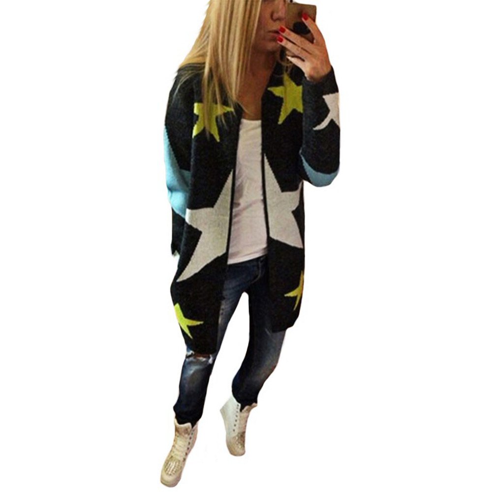 > Damen Bekleidung > Pullover > Herbst für Sterne Muster Drucken casual Mode Damen lange Pullover Strickjacken Locker warm aus langen Ärmel warm