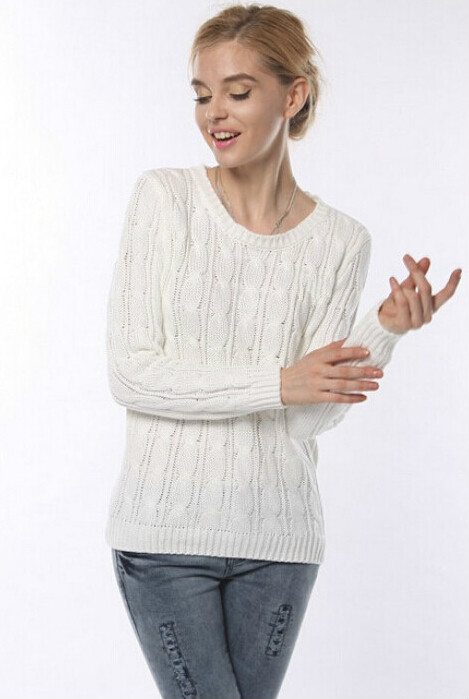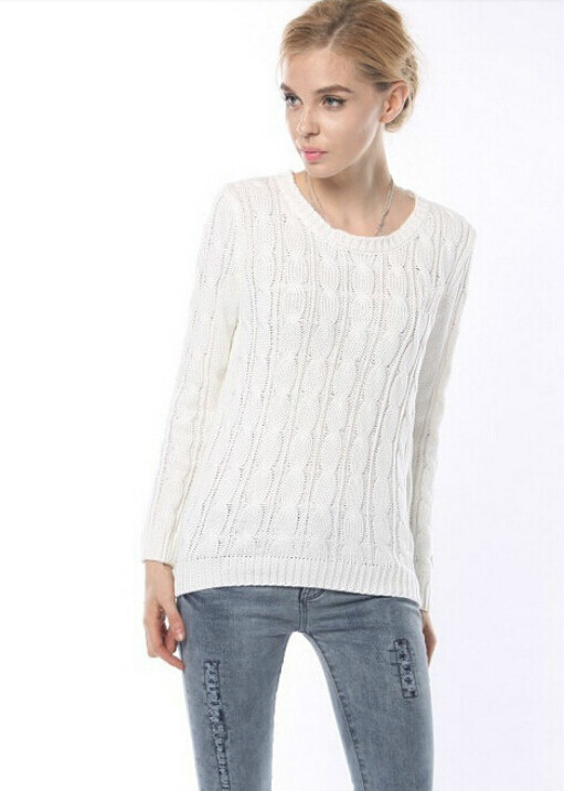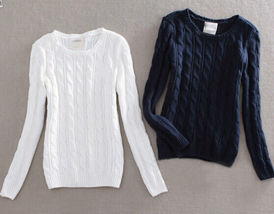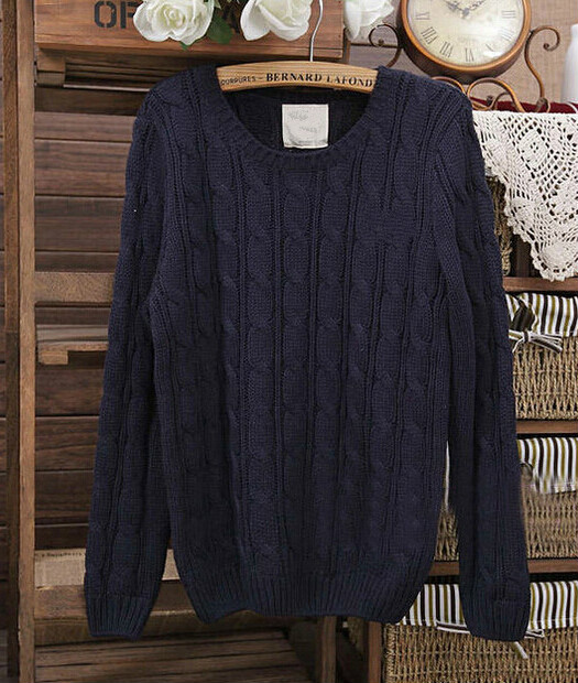 > Damen Bekleidung > Pullover > warme Pullis Damen Mode lässig aus Pullover o Hals lange Ärmel solide Blau Weiss slim von Lady Marke Schweiss