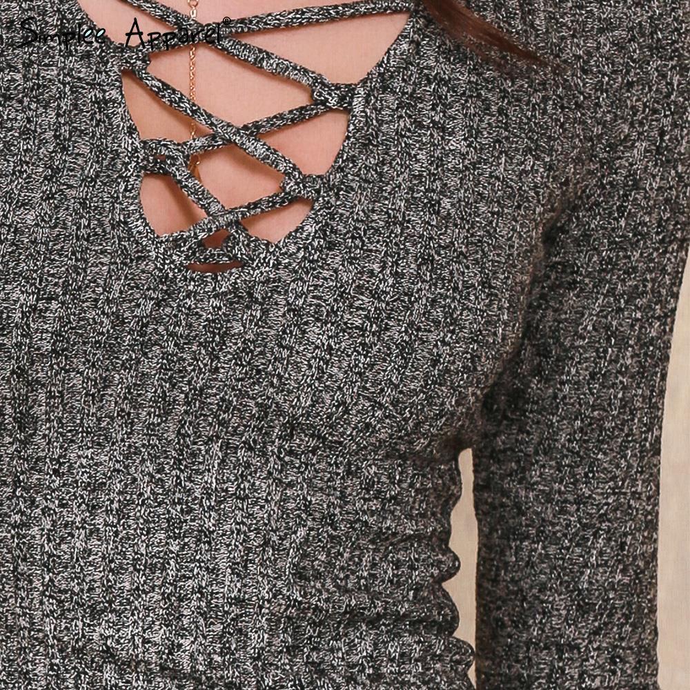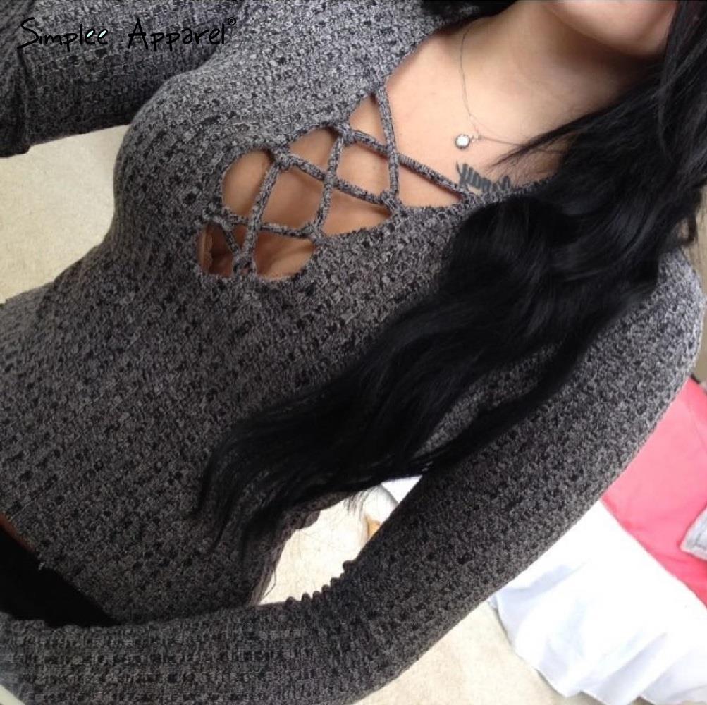 > Damen Bekleidung > Pullover > simplee Holzkohle Herbst sexy v Hals Gewirkt Damen Pullover Spitzen bis slim lange Ärmel an elastischen cross