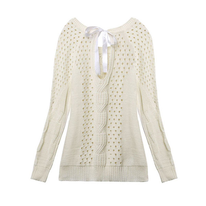 > Damen Bekleidung > Pullover > Herbst Winter neue Damen Strickwaren Marke Mode Springer Hebt aus Pullover Bogen rückenfrei lange Ärmel Bluse Pullover