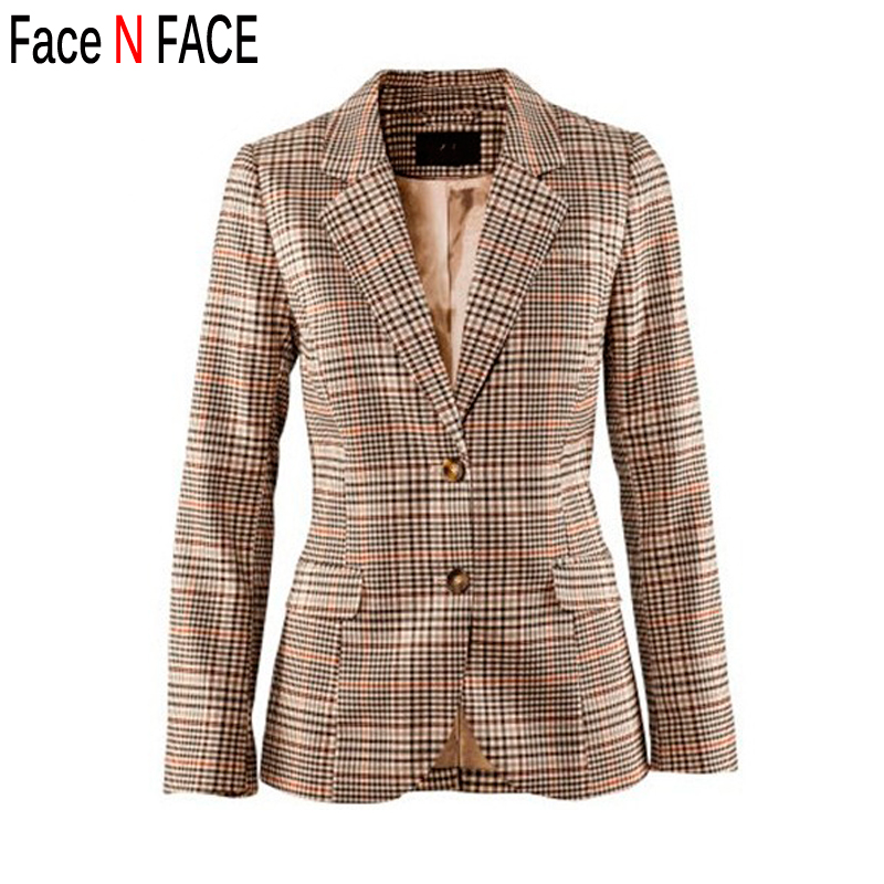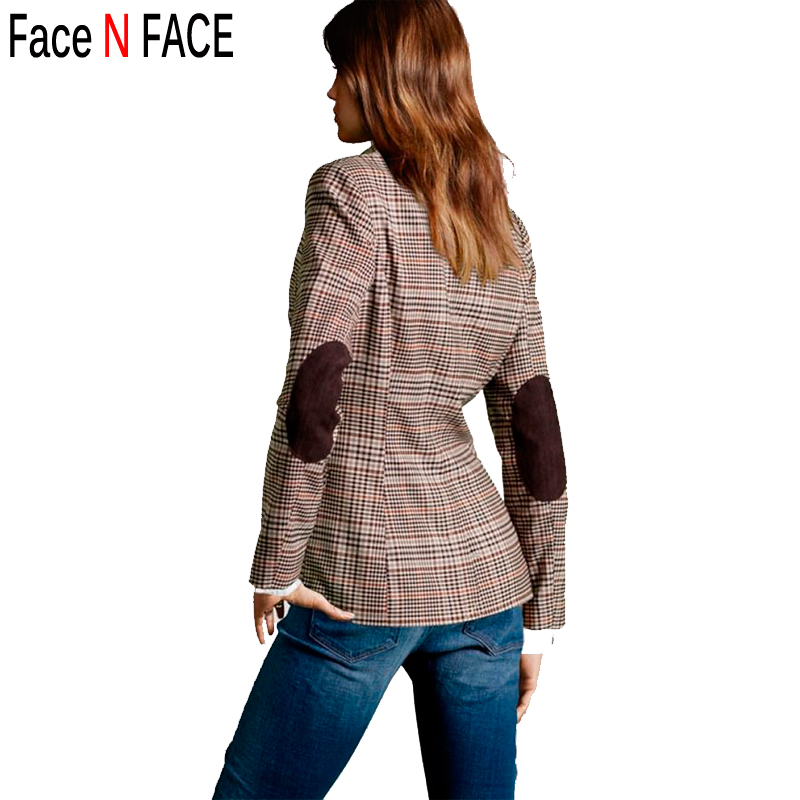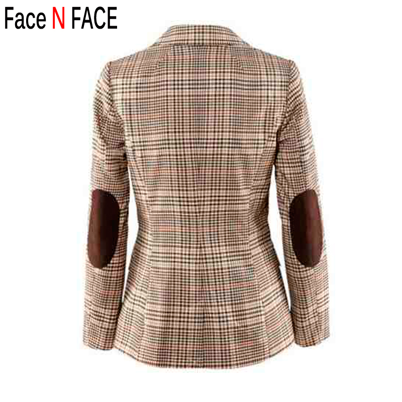 > Damen Bekleidung > Anzüge > Gesicht n Gesicht Damen karierten Blazer im Herbst neue Mode karierten Ellbogen Pflastern zwei Button slim fit Blazer