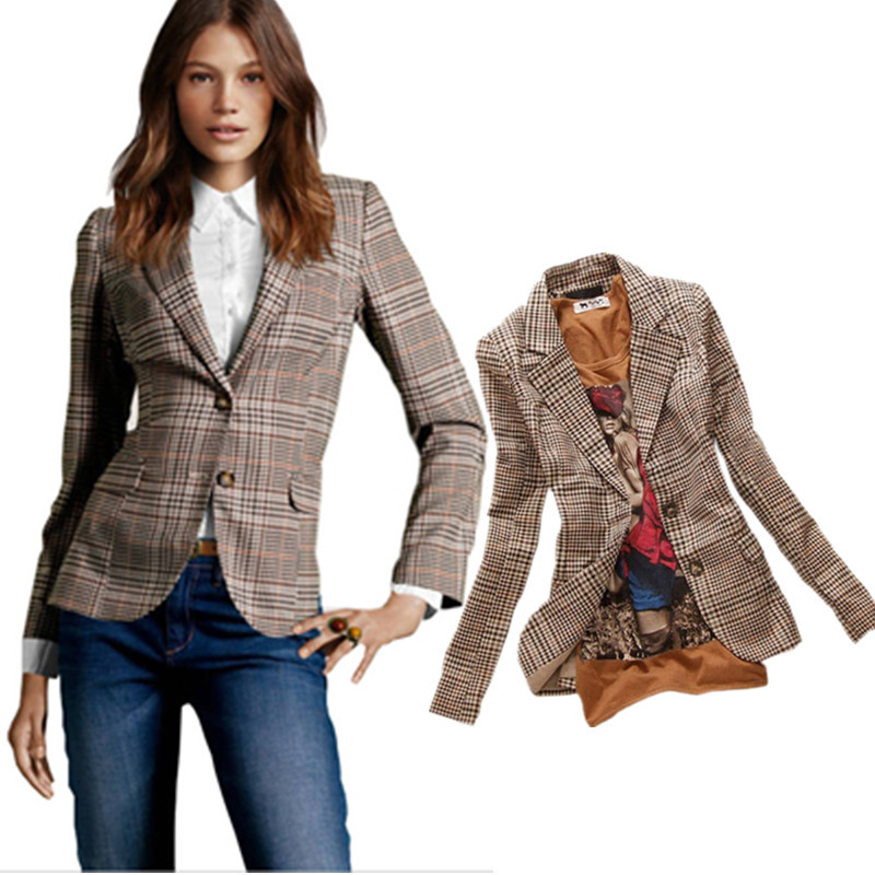 > Damen Bekleidung > Anzüge > neue Moderne Damen und kariert Ellbogen patches zwei Button slim fit Blazer Damen Herbst Steht die Jacke