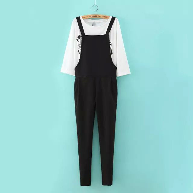 > Damen Bekleidung > Anzüge > Damen Mode Setzt der Print T Shirt Schwarzer HosenAnzug Setzt ae001