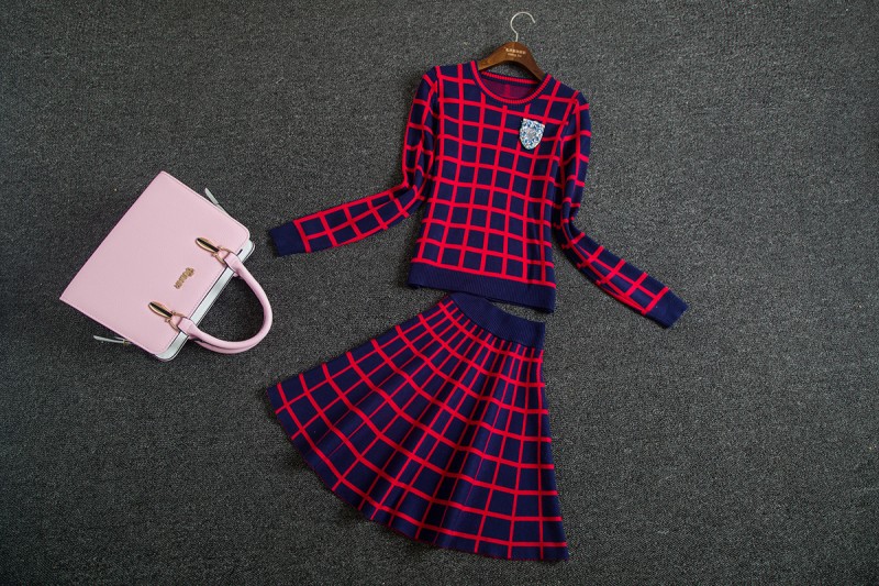> Damen Bekleidung > Anzüge > Frühling im Herbst neue Koreanische Version Pullover für Damen und Rock im kleinen feldern Luft süß Freizeit