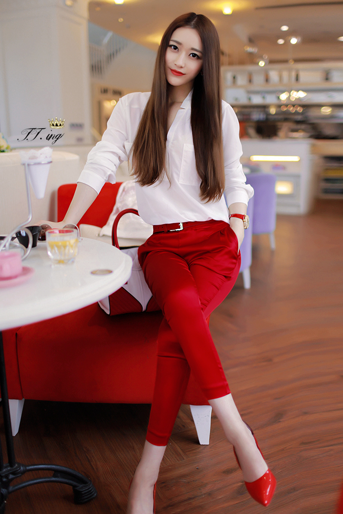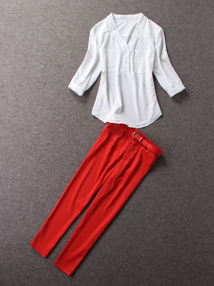 > Damen Bekleidung > Anzüge > kurzer Sommer Mode der Twinset Weisse Tops Rote hintern heben Knöchel länge Rot Capris Anzug Hals BleiStift Hose