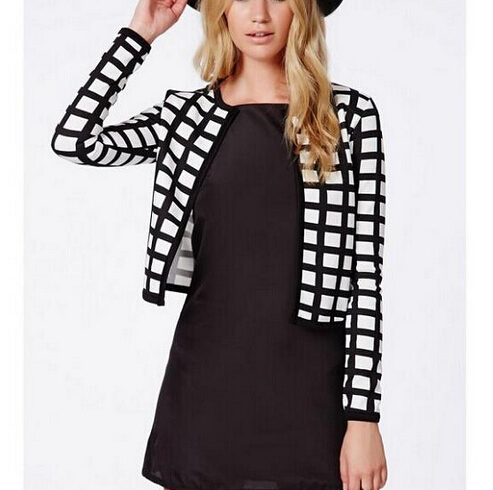 > Damen Bekleidung > Anzüge > Damen Vintage karierten Pflanzliche Mantel kurze Jacke lange Ärmel Outwear nicht casual casaco weibliche casaco Jack