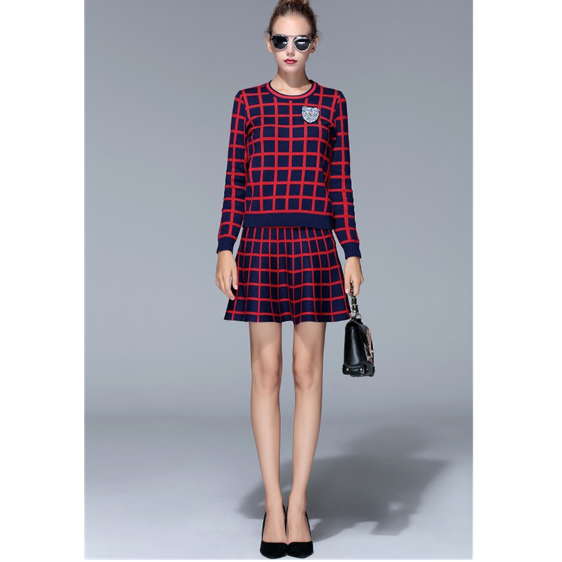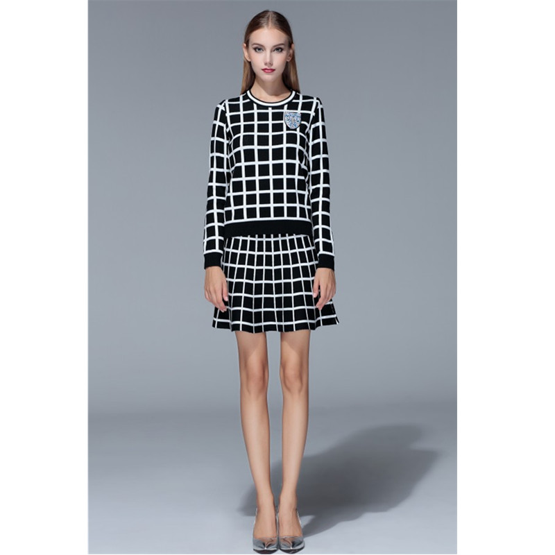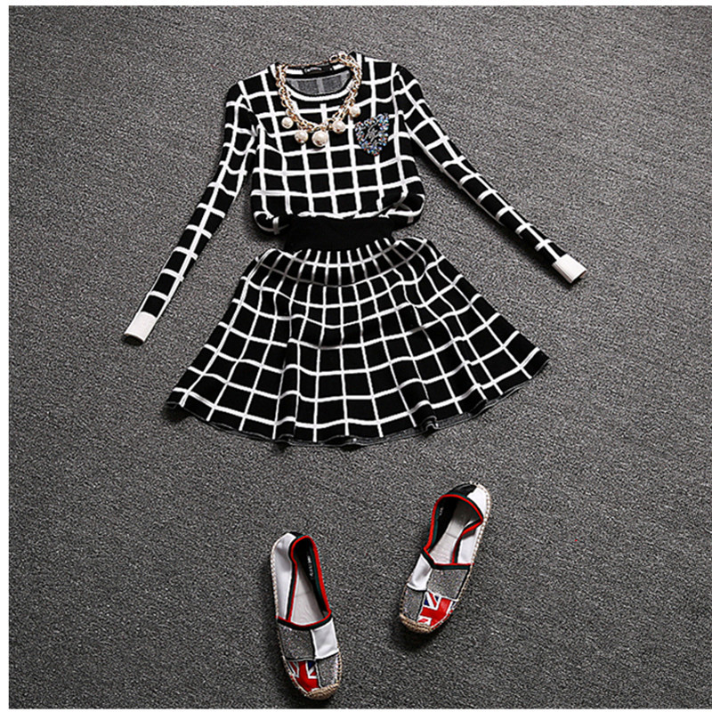 > Damen Bekleidung > Anzüge > neue Stricken lange Ärmel Pullover Rock Steht Damen süß Perlen Kragen gestrickt Häkeln Raster Pflanzliche Top linie
