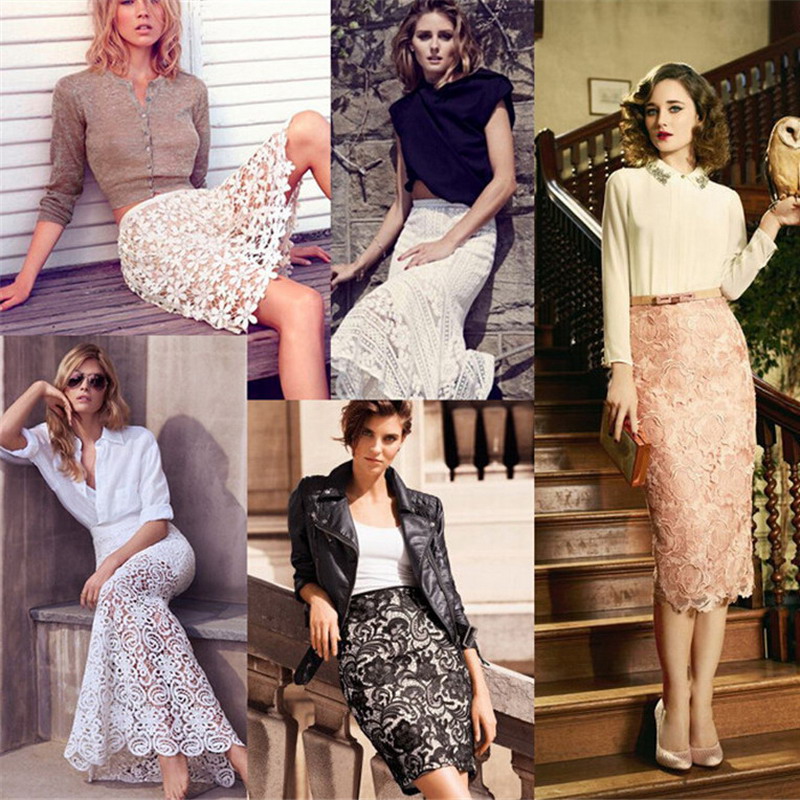 > Damen Bekleidung > Hosen > hohe Taille Bodycon Rock Spitzen Damen Röcke weibliche Schwarze saia curta Feminino Vintage Damen BleiStift Rock