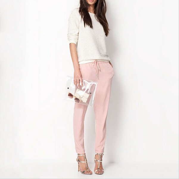 > Damen Bekleidung > Hosen > heißes Verkauf neue Marke casual Damen Hosen Einfarbig Tunnelzug elastischen Bund bequem in voller länge Chiffon