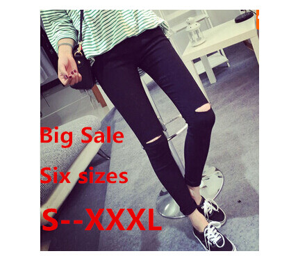 > Damen Bekleidung > Hosen > Grosses plus Size Hochelastischen Baumwolle Damen Schwarz hohe Taille zerRissenen Jeans Riss loch Knie Dünnen Bleistift